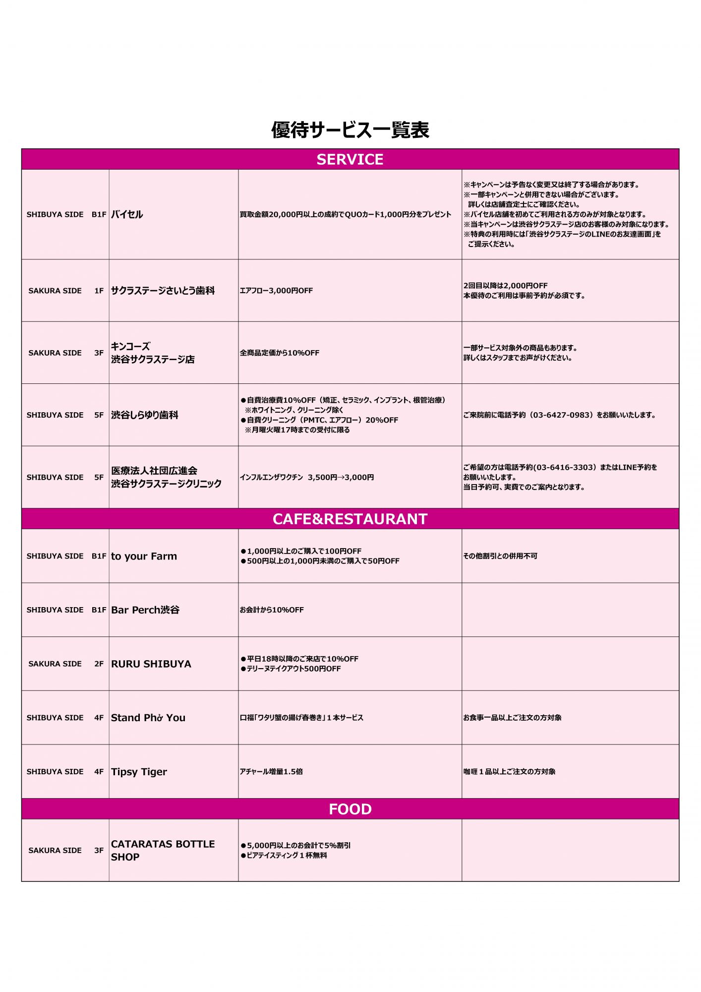 【商業施設優待】渋谷サクラステージにてWorker's Garden会員様への特別優待ご提供スタート!