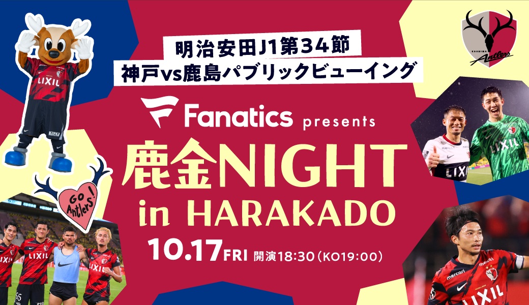 2025.9.29【NEW】【5組10名様ご招待!】鹿島アントラーズ公式パブリックビューイング -Fanatics presents 鹿金NIGHT in HARAKADO開催!