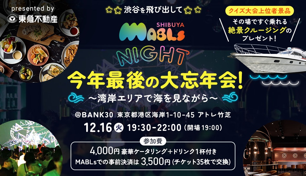 2025.12.1【NEW】【ドリンク1杯サービス!】MABLs NIGHT大忘年会~湾岸エリアで海を眺めながら~