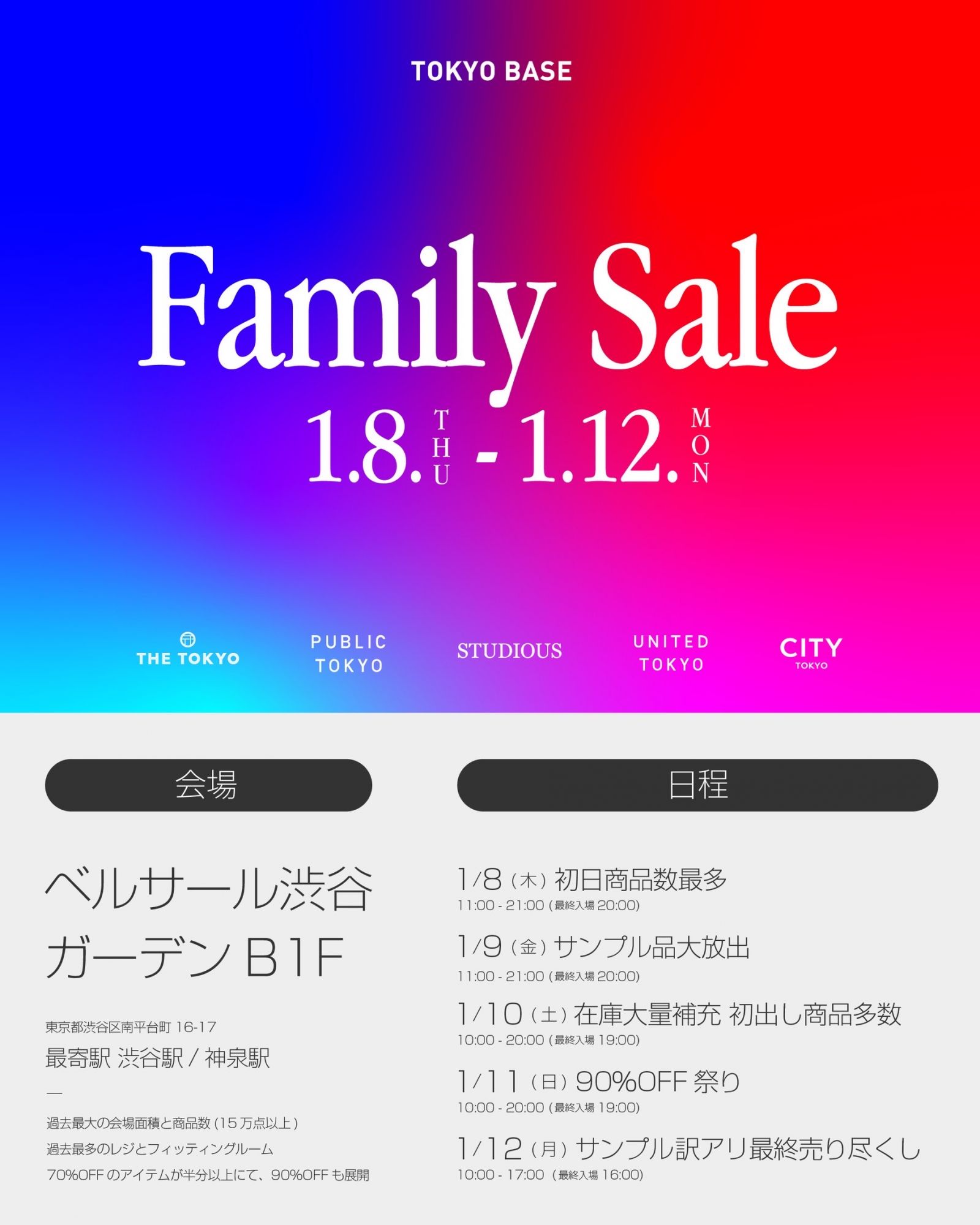 完全予約制のTOKYO BASEファミリーセールへご招待のお知らせです。